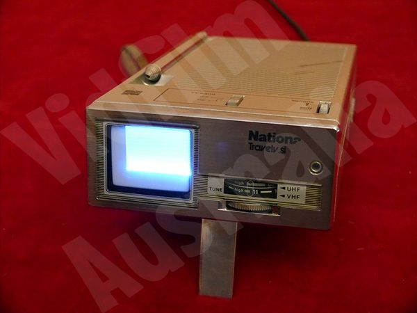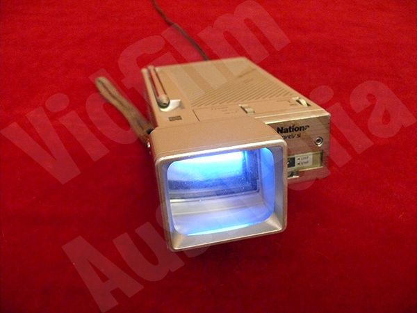 National TV. TR1010A. Portable. 1.5 inch black and white CRT screen with clip-on magnifier to 2.5 inch. VFS6-VM 33